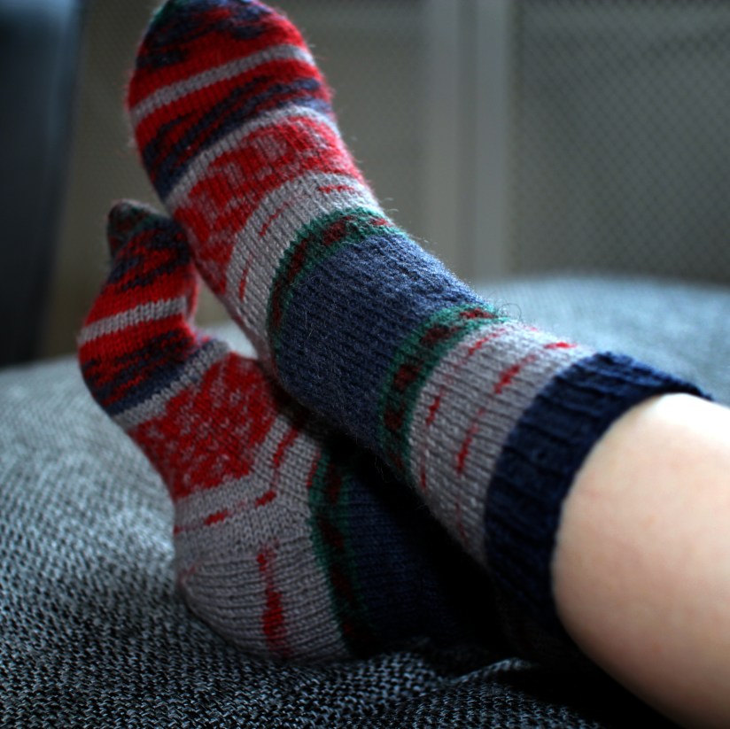 Så fik husets mindste beboer også et par nye uldsokker, strikket med resterne fra mandens sokker.