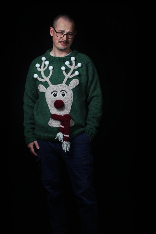 For ca 1 måneds tid siden spurgte manden i huset om ikke jeg ville strikke en julesweater til ham. Af typen “Ugly Christmas Sweater”. Det ville jeg selvfølgelige gerne og jagten på den perfekte sweater gik i gang. Der var dog et par kriterier der skulle opfyldes; den skulle være hurtig-strikket, ikke alt for svær og helt tilpas ugly. Valget faldt til sidst på Rudolf sweateren fra bogen “Strik din egen julesweater – 24 skønne decembermodeller”.