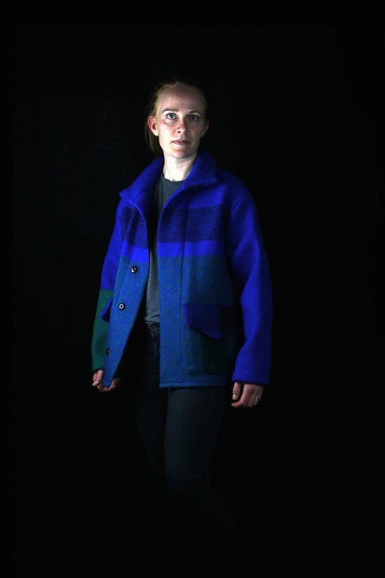 Jakken er syet ud fra et dejlig varmt uld-tæppe som jeg fandt i en af de lokale genbrugsbutikker. Jeg har brugt mønsteret til Ingrid jakken og kun justeret lidt på længden. Jakken var en anelse besværlig at sy, blandt andet fordi tæppet var ret tykt, så nogle sømme skulle syes for hånd.