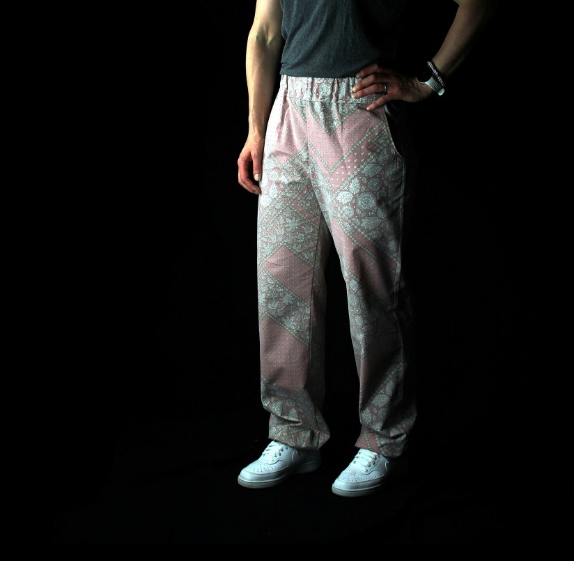Bukserne er syet efter det samme mønster som mine tidligere sy-bukser, “Joggedress” fra bogen Sy med Ingrid og Ingrid. Stoffet fandt jeg i den lokale genbrug.