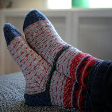 Så fik husets mindste beboer også et par nye uldsokker, strikket med resterne fra mandens sokker. Sokkerne er ret tynde og passer perfekt som et ekstra lag inde i vinterstøvlerne. For at undgå at sokkerne blev for brede gik jeg ned 1/2 pindestørrelse (pinde 2.0) og det var sjovt at mærke hvor meget mere “faste” … More Regia pairfect #2