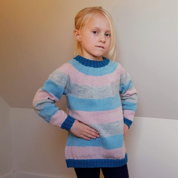 er skabt i Strikzillas syverden! Jeg vil lade billedet tale for sig selv – Alvildes udtryk af ren og skær glæde viser, hvor tilfreds hun er med sin nye sweater. Som jeg tidligere har nævnt, købte jeg en stor pakke jerseystof på Den Blå Avis for et stykke tid siden. Den venlige sælger lagde endda … More Endnu en sweater