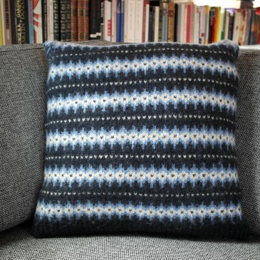 Så har jeg strikket enda en sofapude, og nok en gang fandt jeg inspiration og opskrift hos Garnstudio. Jeg synes puden ser ret avanceret ud, men så længe du følger opskriften er den faktisk ret nem. Puden strikkes rundt på en rundpind, hvilket betyder der er minimalt med montering – bonus, bonus!