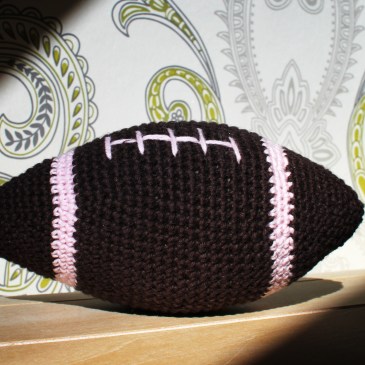 Som tidligere nævnt er babyen vild med bolde og jeg har derfor hæklet en lille (meget lille) amerikansk fodbold til hende. Opskriften fandt jeg her, jeg valgte dog at hækle bolden i stedet for at strikke den. Inde i bolden er der en lille klokke inde i sådan en plastic-dims du finder i Kinderæg. Jeg … More Hæklet babylegetøj
